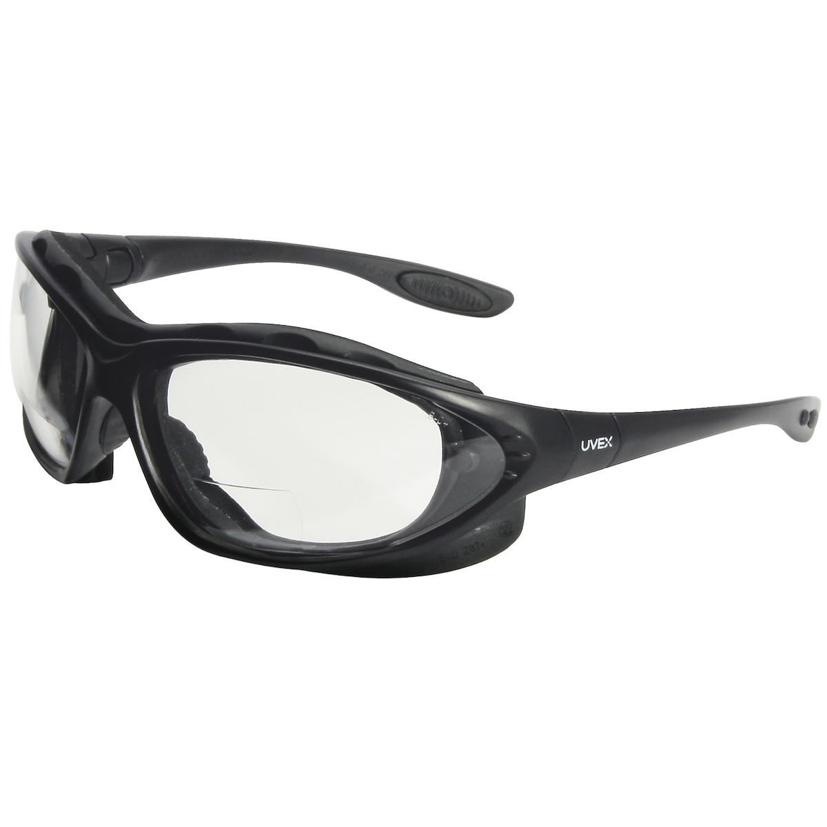 Full Frame Safety Glasses with Metallic Blue Frame, Foam Padding, Clear Lens and Anti-Fog Coating -+1.50 Diopter